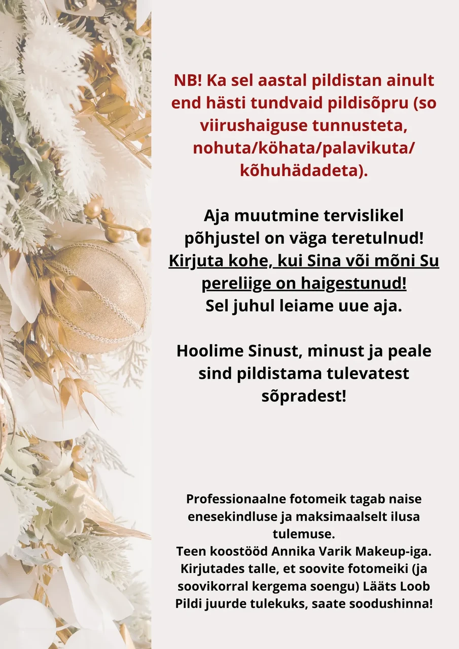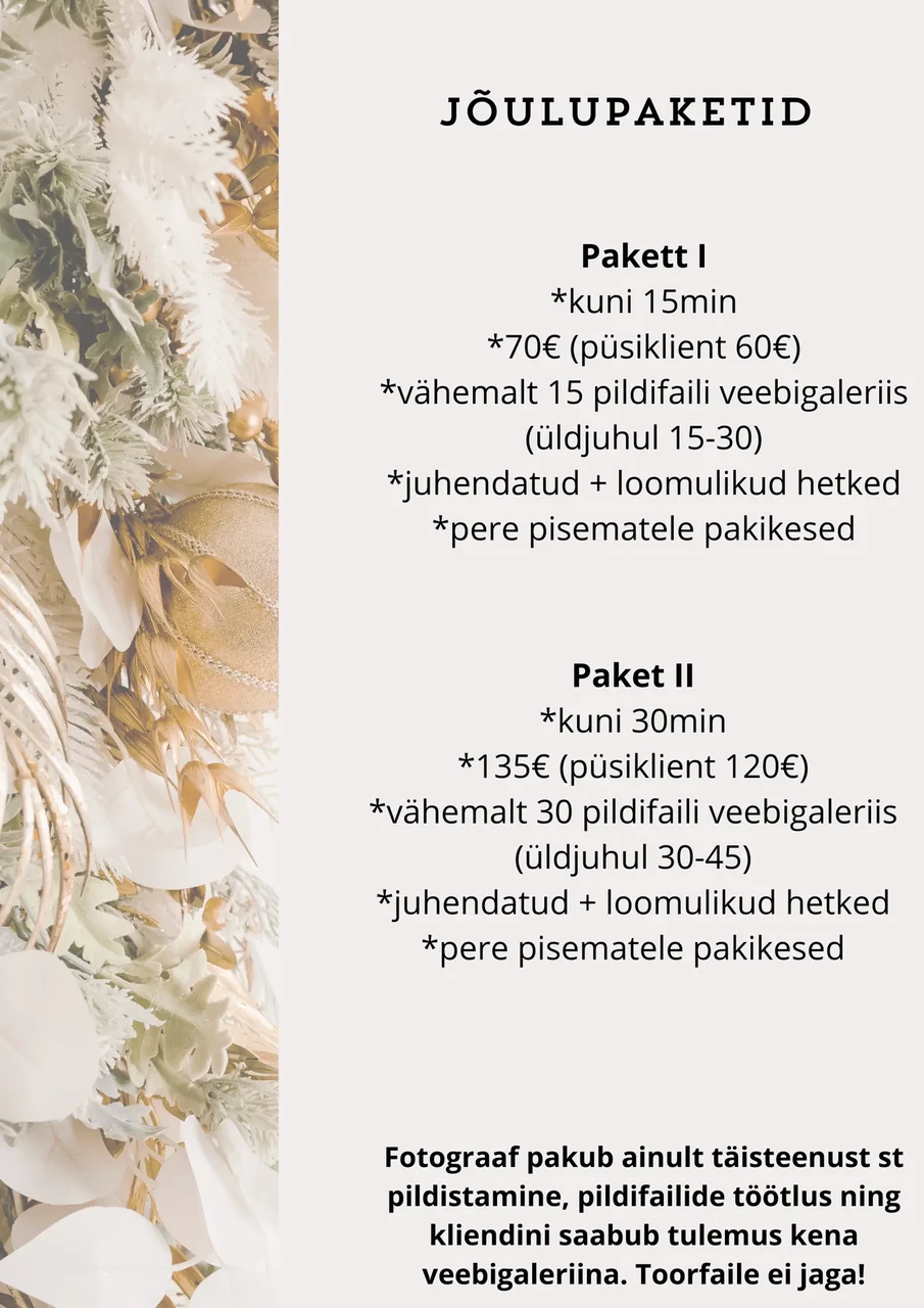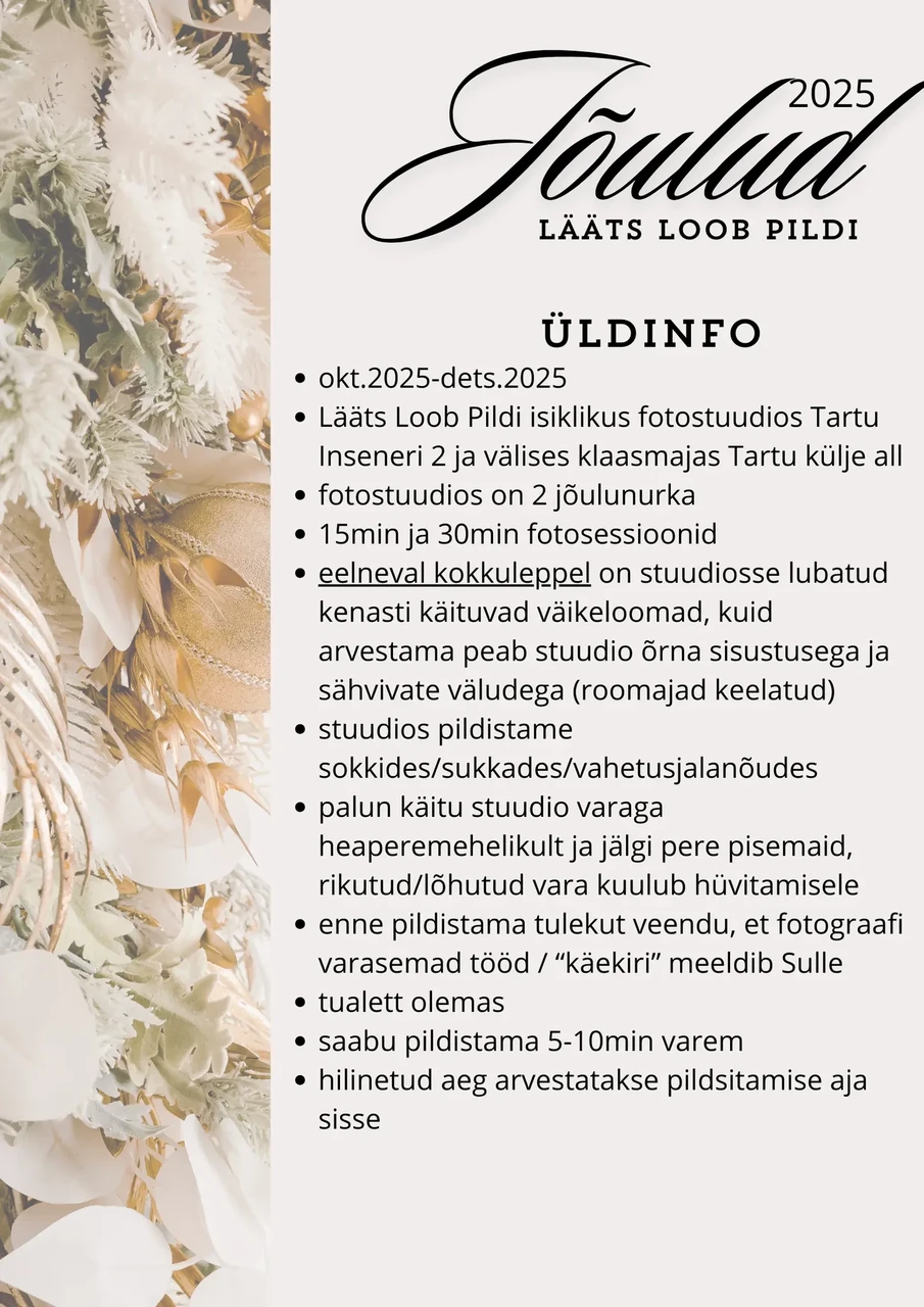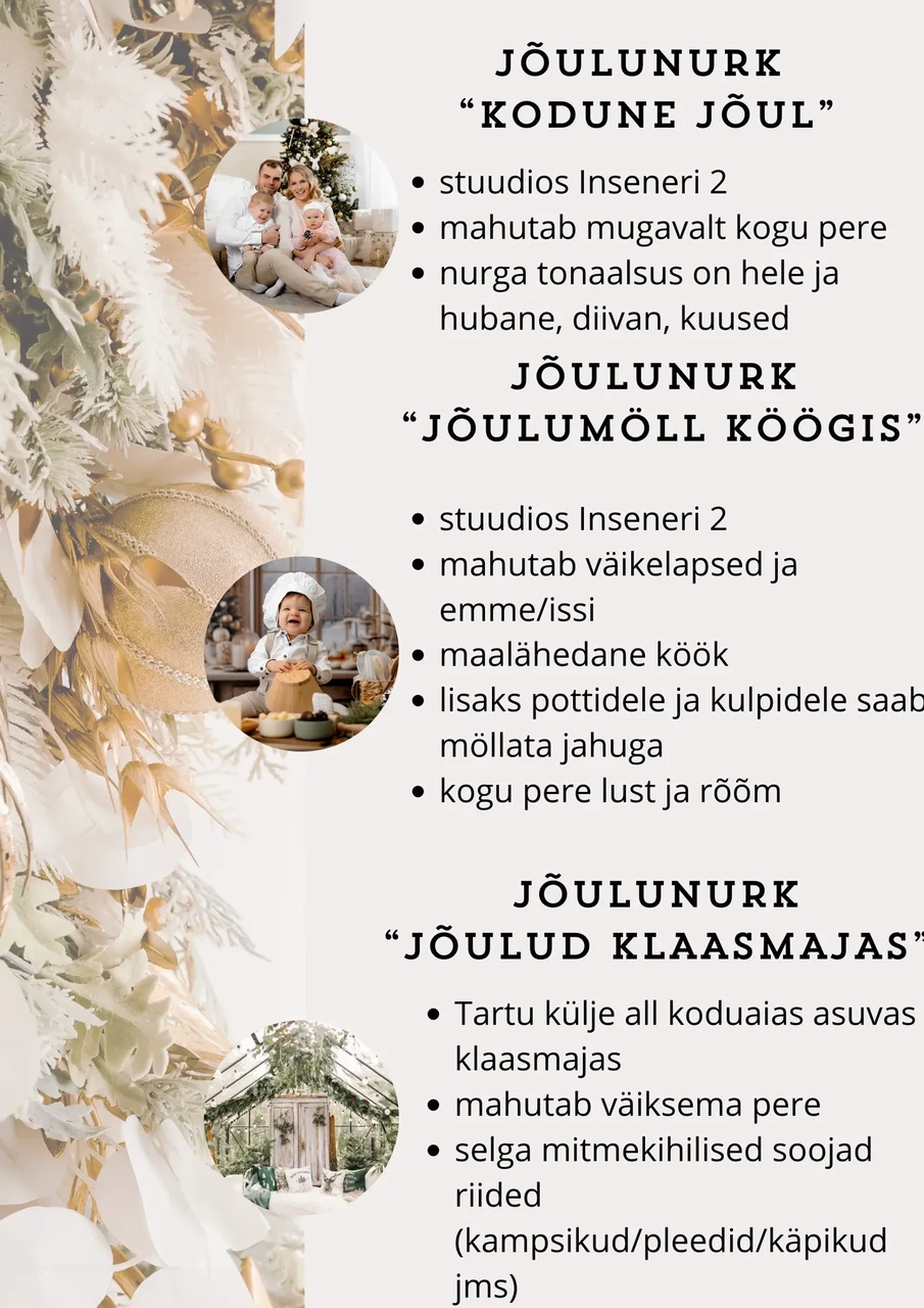 *Jõulusessioonid Lääts Loob Pildi Tartu stuudios (Inseneri 2) ja Tartu külje all koduaia klaasmajas